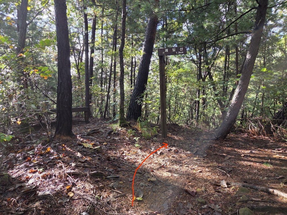¿Õº¹ÇÏ¿© ÁÂÃøÀ¸·Î ³»·Á°¡¾ß ÇÏ´Â °¥¸²±æÀÌ´Ù. ±¥ÀÏ»ê Á¤»ó 0.3km